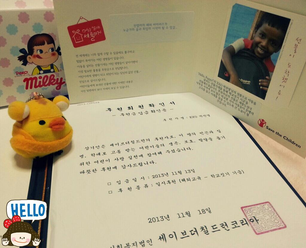 찬열이의 생일을 축하하기 위해 'EXO 박찬열'이름으로 학교짓기 기금을 기부하였습니다.