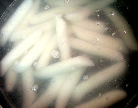 시간 단축을 위해 떡볶이 떡을 살짝 데침