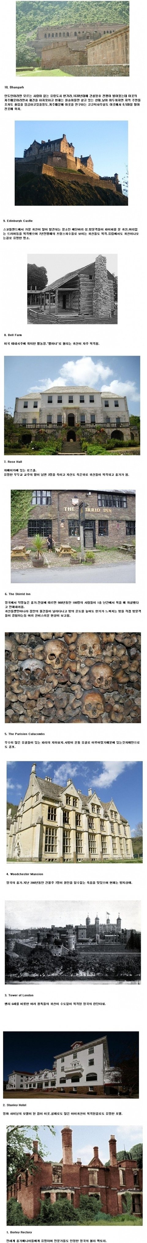 곤지암 정신병원, 영덕 흉가, 그리고 늘봄 가든이 가장 유명하다고 한다.