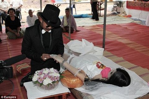 그녀를 너무 사랑한 신랑이 죽은 여자친구와 결혼식을 올리기로 했던 것이다.