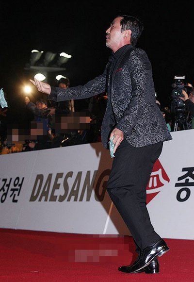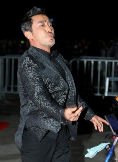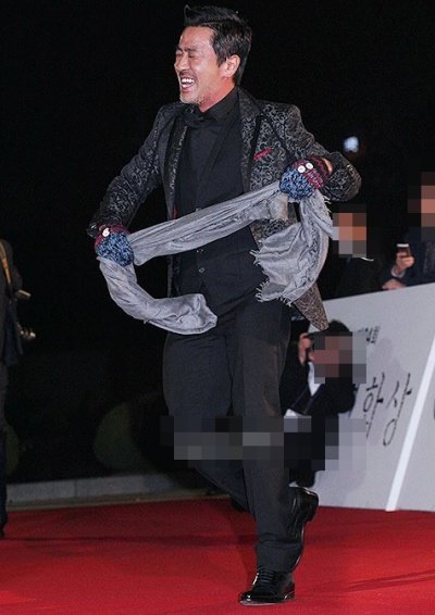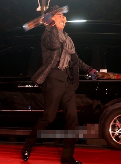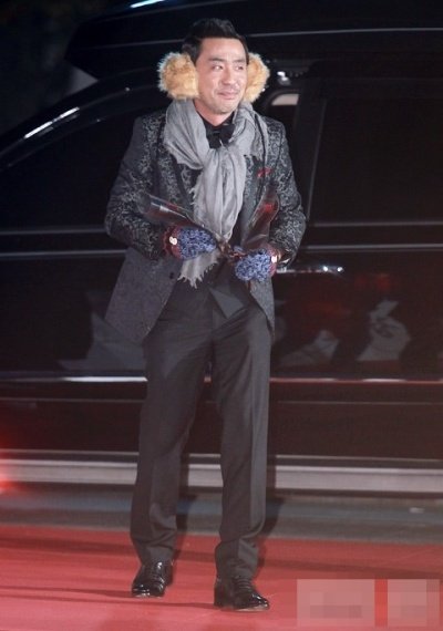 무척 추웠던 날 진행되었던 시상식에 진짜 휘황찬란한 패션으로 등장한 류승룡ㅋㅋㅋㅋ