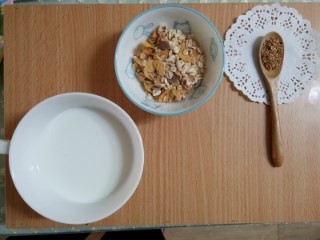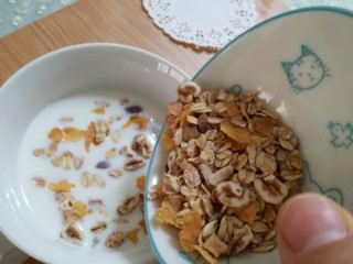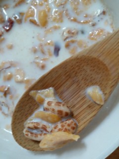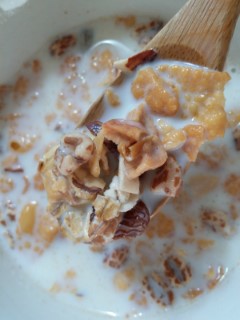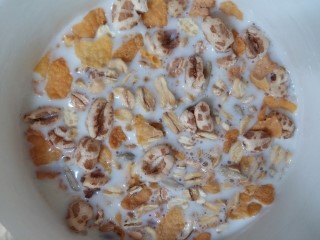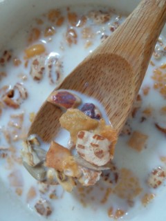 따뜻하게 데운 우유에 ... 무슬리 부어주긔.
