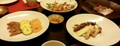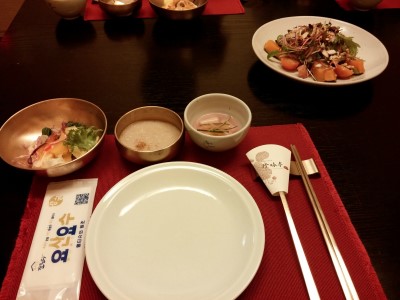 홍시연근샐러드 / 오자죽 / 물김치 / 단호박 오리고기 샐러드