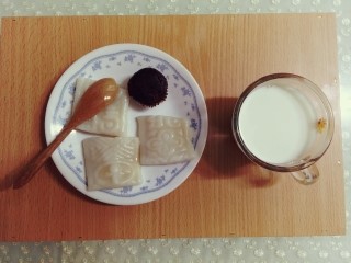 흰 절편 3 + 꿀 1 / 초코 미니 머핀 / 우유 1컵