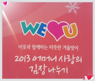 오늘 성남시청 앞 마당에서 열린 이웃과 함께하는 따뜻한 겨울맞이 "2013 어머니 사랑의 김장 나누기"에 다녀왔습니다. 다가오는 겨울을 따뜻한 사랑으로 보낼 수 있도록 돕기 위해 마련된 자리였습니다. 국제위러브유운동본부 회장님의 인삿말씀으로 김장담그기 행사가 시작되었습니다.