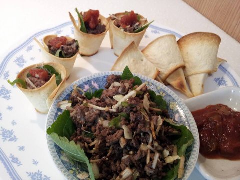 또띠아에 다진마늘+올리브오일+버터+설탕+파슬리가루 섞은걸 발라서 구운거예요. 맛있어요~ 마늘빵이랑은 또 다른 식감