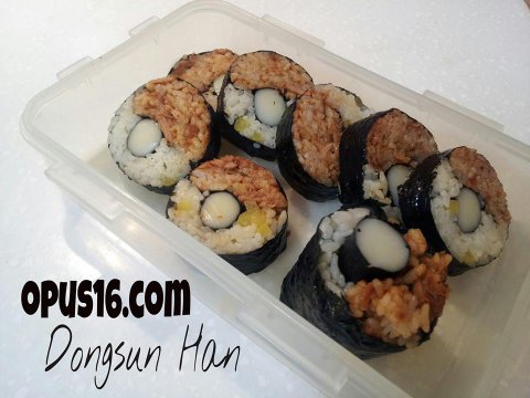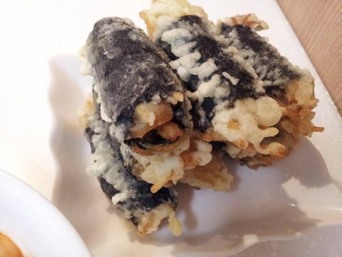 안에는 당면이랑, 다진마늘, 닭고기를 간장이랑 설탕 약간 넣어서 볶아 넣은건데요, 정말 맛있어요~ 특히 금방 튀겨낸 김말이는... 밖에선 절대 먹을 수 없는 그런 신선한 맛이죠 -.-