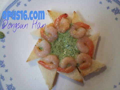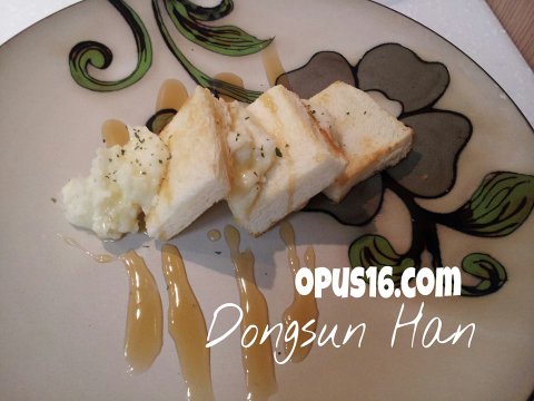 살짝 구운 빵에 매쉬드 포테이토 얹고 시럽뿌린거예요!