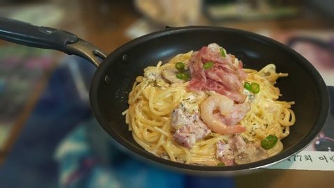 이건 좀 새롭게 해보겠다고 잘게 썬 감자, 햄에 발사믹소스 만들어 넣고 조린다음에 크림파스타 만든거에 섞어본건데.. 글쎄요! 맛은 있었는데 그렇게 공들여가며 다시해먹을 맛은 아니었던..