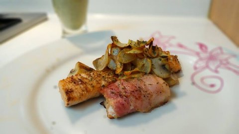 해서 친구한테 레시피좀 물어보니 그냥 레몬즙이랑 후추좀 뿌리고 베이컨을 같이 구우면 맛있다네요! 바로 실행
