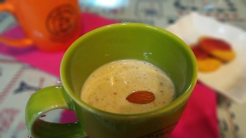 그냥 밤이랑 우유랑 견과류, 꿀 넣고 갈은거예요. 고소하고 맛있어요!