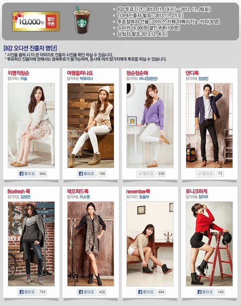 슈마커 모델 오디션은 슈마커 페이스북을 통하여 온라인 투표를 하고 있어요.