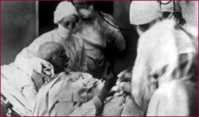 이후 1932년,70살의 노령이 된 그는 보다 복잡한 서혜부 탈장 수술의 자가 수술에까지 도전합니다.상단의 사진이 그가 자신의 탈장을 치료하는 모습을 찍은 사진인데밀리미터 단위의 정확성이 요구되는 이 수술에서도 그는 침착함을 잃지 않고 도리어 농담까지 구사하는 모습을 보였다고 하네요.