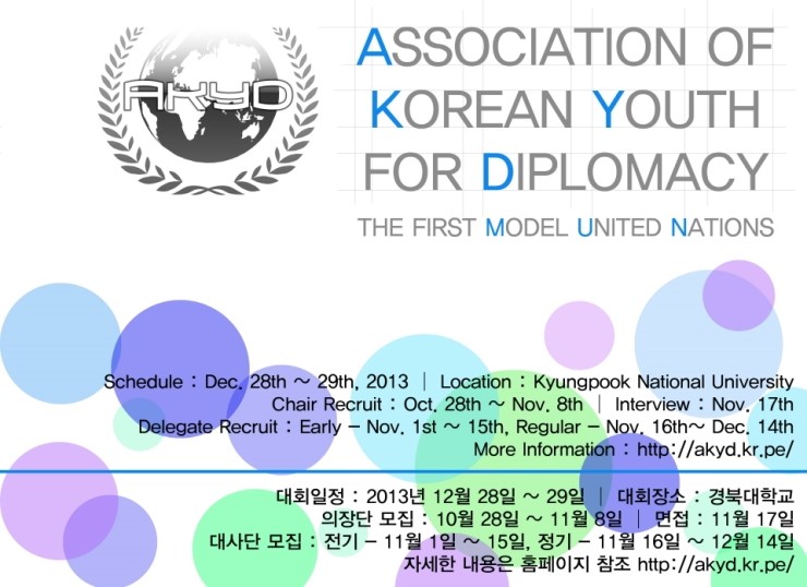 이번에 저희 AKYD에서 정기적으로 개최하는 모의유엔대회에 많은 관심 부탁드립니다.