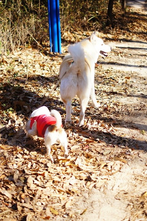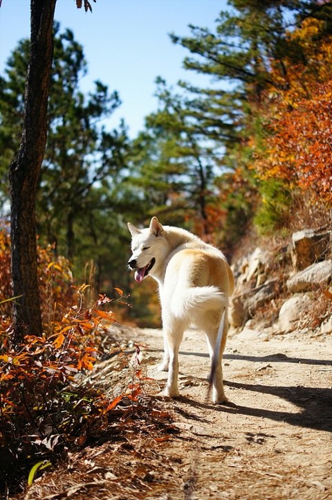 ㅋㅋ 낙엽뒤로 보이는 통통한 궁뎅이