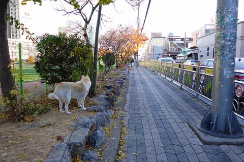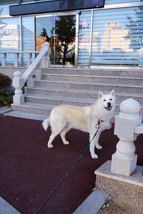 이른시간이라 문이 닫혀있는 애견용품점 앞에서..