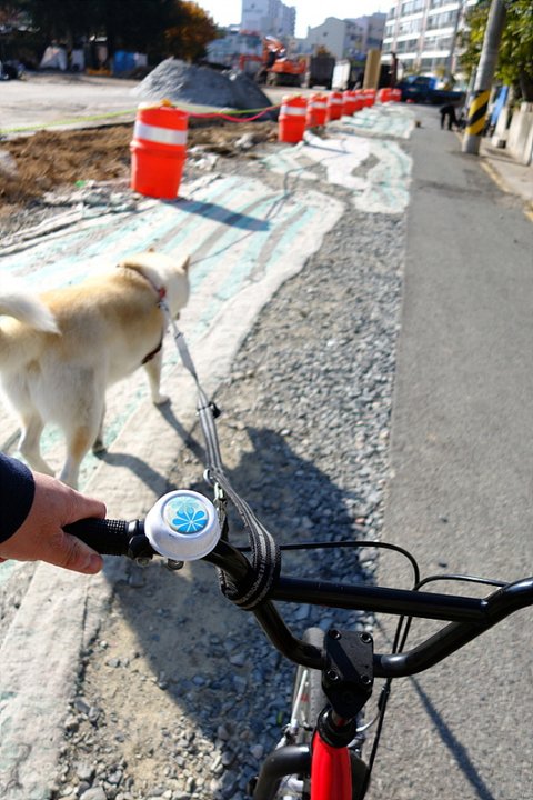 오늘은 킥바이크를 타고 산책시키려구요