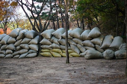 긁어 모은 낙엽을 저렇게 모아놓으셨더라구요