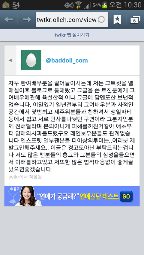 ㄱㄷㅇ님 또 글올렸네요. 뭐 ㅎㅂㄹ님 일은 알아서 잘해결하신것 같고 그건 어디까지나 ㄱㄷㅇ님 지인분 일이니 인슾이랑 더 상관없고 글내용은 인슾들 심정도 어느정도 이해하고 있고 최대한 좋은 방향으로 해결하고 싶다하니 탈덕할 인슾들은 조용히 가시고 남은 인슾들도 조용히 기다립시다. 명수가 한마디 하고 안하고가 뭐가 중요한지... 지금은 무슨말해도 이리까고 저리까고 그냥 차라리 가만히 있는게 낫네요. 한마디 하면 또 이슈되고 안끝나요. ㄱㄷㅇ님한테도 명수한테도 시간이 빨리 지나가는거 말곤 답 없는듯... ㄱㄷㅇ님도 명수도 이번 사건으로 느낀게 많을겁니다. 공인으로 처신을 똑바로 못하면 어찌되는지... 참다못해 고소한거겠지만 암튼 ㄱㄷㅇ님도 좀 자숙하세요. 님때문에 몇만명 이상 상처받은것도 아셔야죠. 뉴콘때 외국팬들이랑 얘기해봤지만 외국팬들도 세세하게 내용 다압디다. 글서 솔까 깜놀했다는... 이런일로 자꾸 노이즈 내는거 정말 싫네요. 남은 인슾들은 깨진 쿠크 잘 붙들고 조용히 기다립시다. 다른 멤버들 생각도 좀 합시다. 걔들은 무슨죄야 ㅠㅠ 아 불쌍해 ㅠㅠ