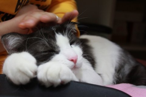 사진에서는 잘 구분이 안되지만 유청이 귀는 다른 고양이 보다 조금 작고 살짝 앞으로 접혀 있어요.