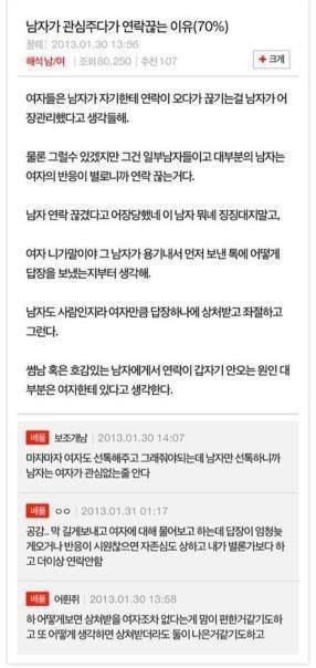남자가 관심주다가 연락끊는 이유 나머지 30%