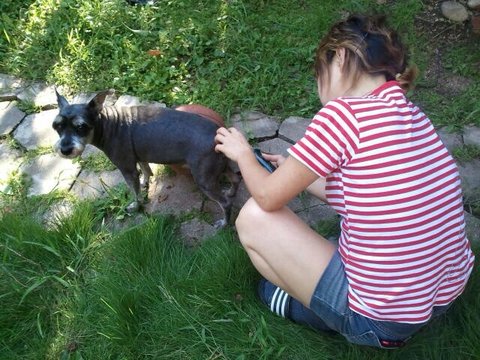 코코는 우리 집에 온 후에는 한번도 미용을 하러 간 적이 없어요~ 우선 코코는 병원을 너무너무 무서워하구요~ 병원에 가면 반드시 검진받을땐.. 입을 채우거든요.. 코코가 병원에서 받을 스트레스를 생각하면 썩 내키지 않더라구요 그래서 이발기를 구입해서 엄마와 함께 2인 1조로 (혼자하면 도망가기때문에..:)) 이발을 해줍니다~ 이 사진은 여름에 날씨 좋은 날 마당에서 이발하는 모습이예요~