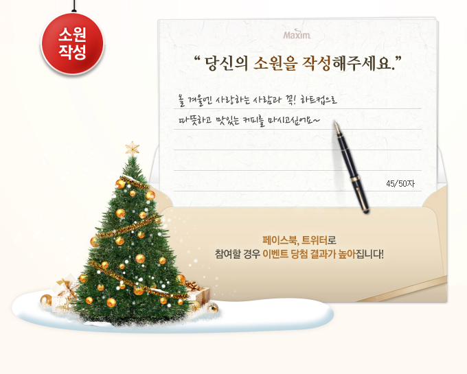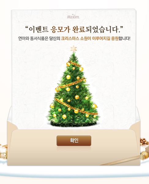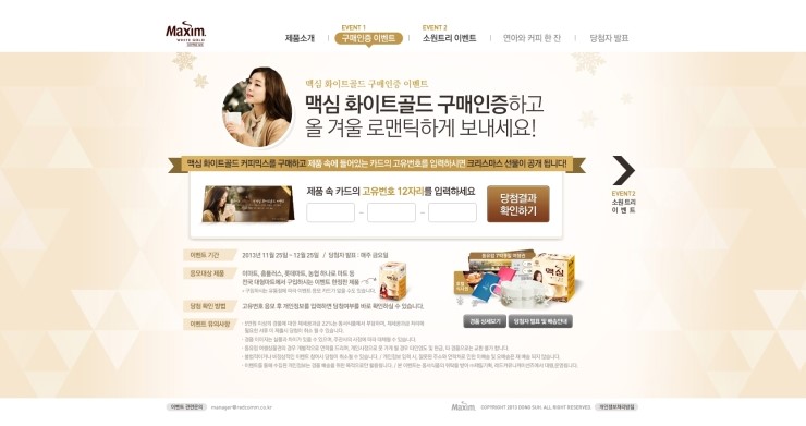 카드의 고유번호 12자리를 입력하면 맥심이 크리스마스 선물을 준대요~♥