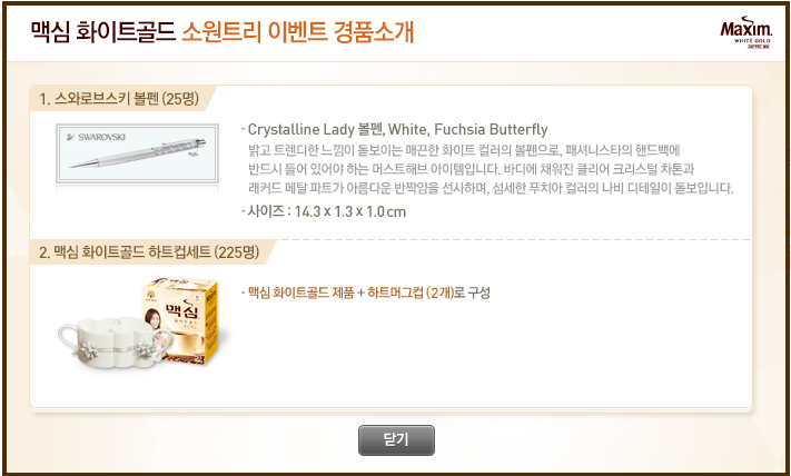 맥심 화이트골드 하트컵 세트 (225명)