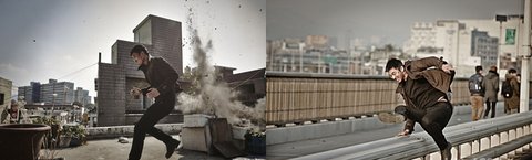 메이킹 필름을 보니 지붕을 달리고, 한강에 뛰들고, 하늘까지 나는 고난이 액션들이