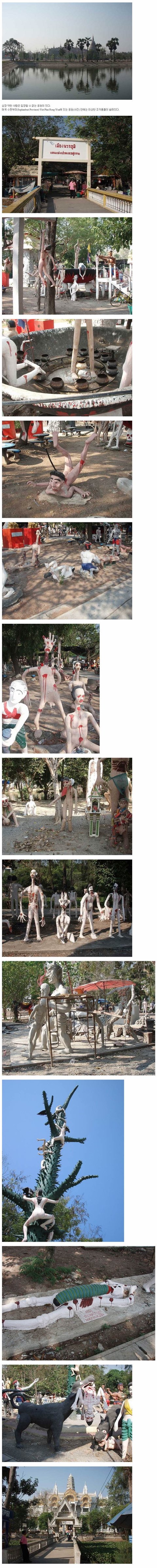 궁금해서 태국 친구에게 물어봤더니 지옥을 보여주는 공원이라네요. 절에서 만든 공원인데 사람들로 하여금 나쁜 행동을 하면 이런 지옥에 간다는 점을 보여주어 잘못된 행동을 하지 않게 하기 위해서 만든거래요.