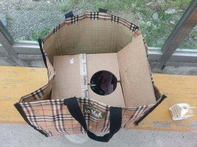 피도 나오고 그래서 상자에 수건을 깔고 큰 장바구니에 상자를 넣어
