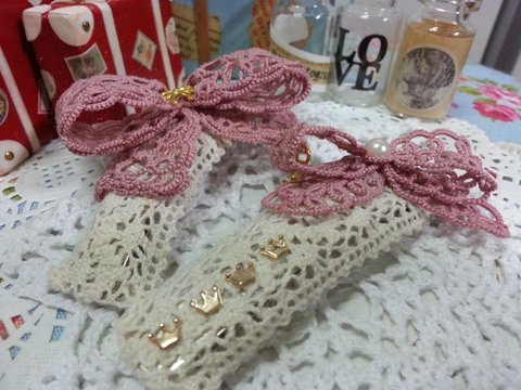 태팅으로 리본을 만들어 핀으로 만들어 봤어요~