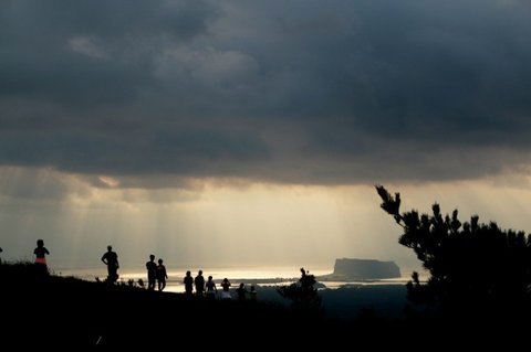 다랑쉬를 돌아서 내려가는길에 멀리보이는 성산일출봉의 빛내림 *_*