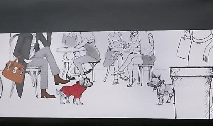 이 그림을 보면 집중이 되는 것은 빨간 옷을 걸친 반려견 한마리다. 이처럼 이제 사람들의 주위를 끌기 시작하는 것은 사람이 입은 패션이 아닌 반려견이 입은 패션으로 넘어올 것이다. 또한 반려견이 자신의 엑세서리 중 하나가 될 수 있다. 마치 딸과 같은 룩을 입고 등장하는 어머니와 같이 등장하는 것과 같은 이치로 작용하게 될 것이다. 지금 거리를 걷다보면 선글라스를 끼고 있는 반려견도 볼 수 있듯이 자신의 패션도 중요하지만 자신과 동행하는 반려견의 패션도 중요한 시대로 접어들었다.