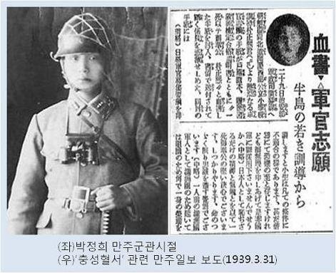 ˝3월 29일 치안부(治安部) 군정사(軍政司) 징모과(徵募課)로 조선 경상북도 문경 서부 공립소학교 훈도(訓導) 박정희 군(23)의 열렬한 군관지원 편지가 호적등본, 이력서, 교련검정합격 증명서와 함께 “한 번 죽음으로써 충성함 박정희(一死以テ御奉公 朴正熙)”라고 혈서를 넣은 서류로 송부되어 계원(係員)을 깊이 감격시켰다.