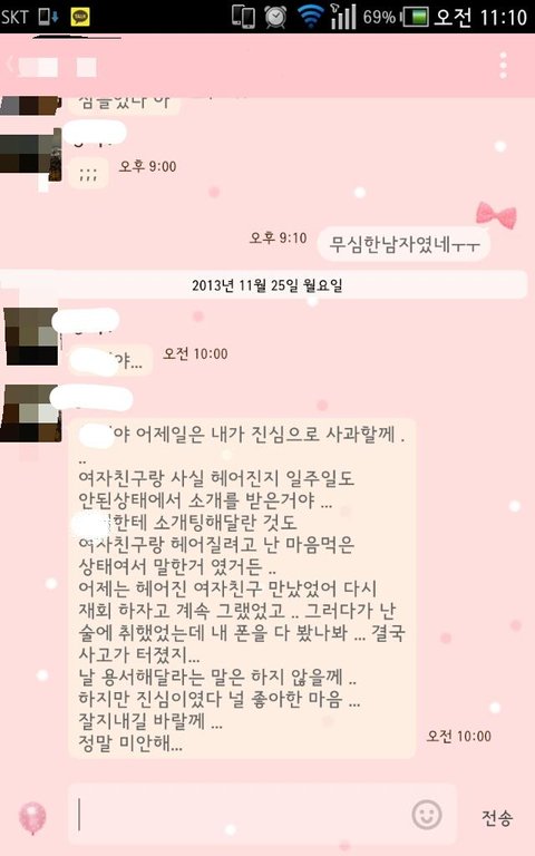 여친과 통화후 다음날 날아온  카톡