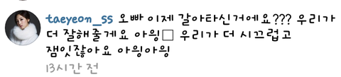 소시태연이댓글을담 갈아탓냐며 돌아오라고 무한애교 ㅋㅋ 귀엽다 아읭아읭(ㅈㅅ)
