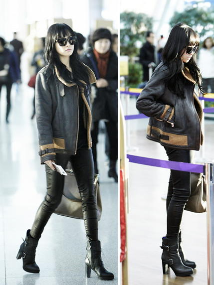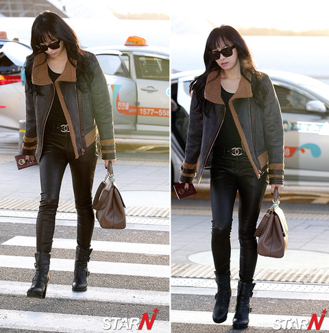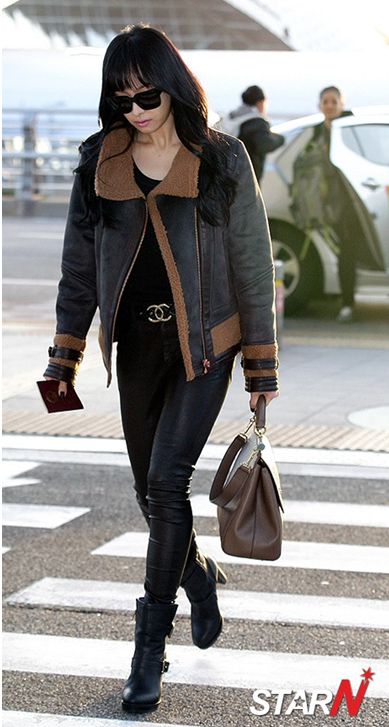 워커+가죽스키니 세트로 오늘 공항패션 시크하게 포인트 잘잡음 !!