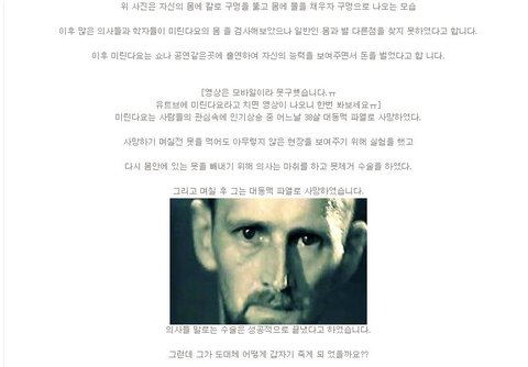 근데 저거 저사람 죽은이유가 미란다요가 자기수술할때 어떻게 어떻게 하라고 그래야 안죽는다 했는데 의사는 그말 안듣고 원래 의학적으로 맞는 방법으로 해서 미란다요 죽음 ㅋ