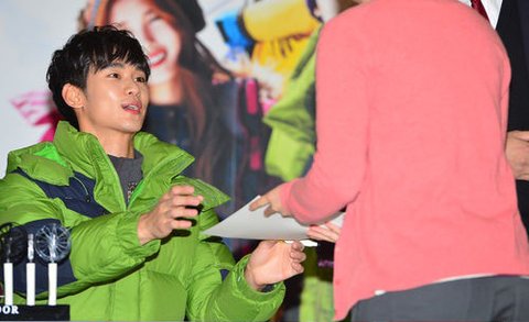 타임스퀘어에서 진행된 빈폴아웃도어 사인회에 모습을 드러낸 김수현