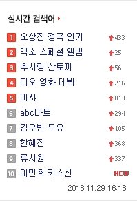 네이트 실검에 엑소랑 디오 떳음
