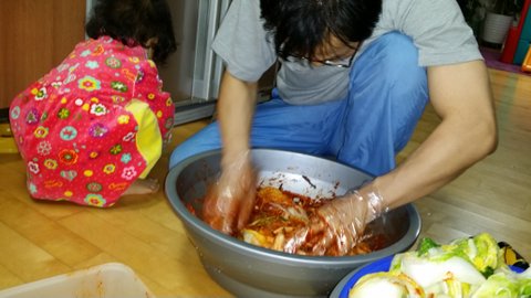 계속 언제하냐며 재촉하는 신랑덕에 애꿎은 배추만 주물 주물