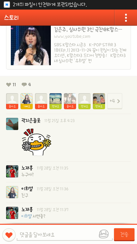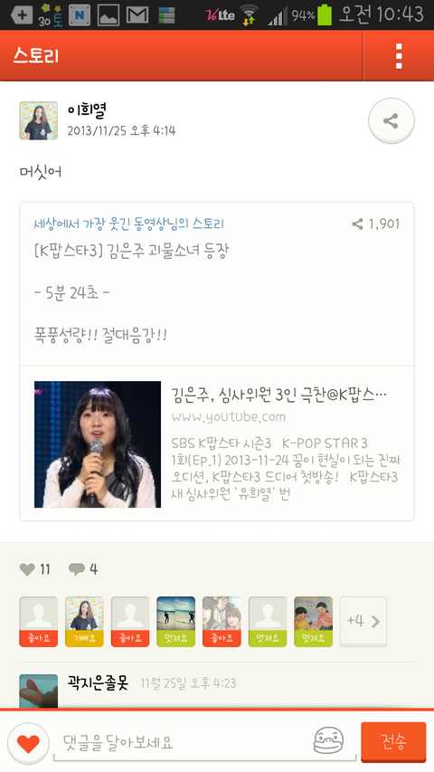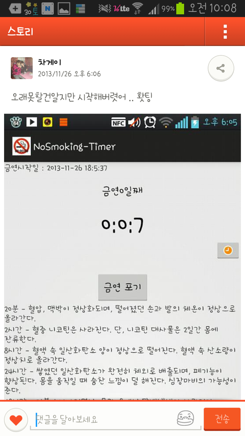 김은주 '전' 남친이 카스에 금연 7초째라고 올리니 착하네 라고 댓글을 다는 김은주 ^^