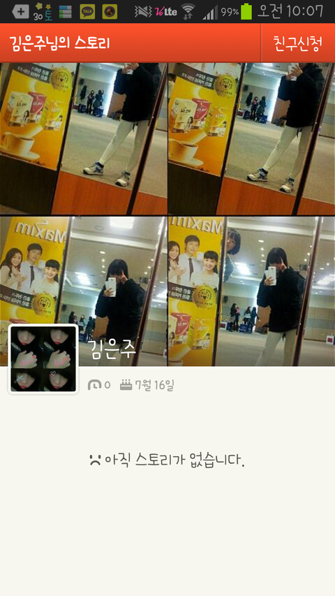 추가) 김은주 카스 오른쪽 상단에 친구신청 없어진거는 제가 이미 친신 눌렀으나 친신 안 받은거에요 다시 말하지만 저기 올려놓은 사진들 다 파도타기로 댓글 타서 들어간거구요 저중에 친구인사람 한명도 없어요
