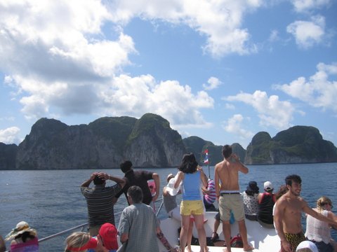 크루즈선의 모두다 한마음으로 피피섬을 바라보고 있습니다.