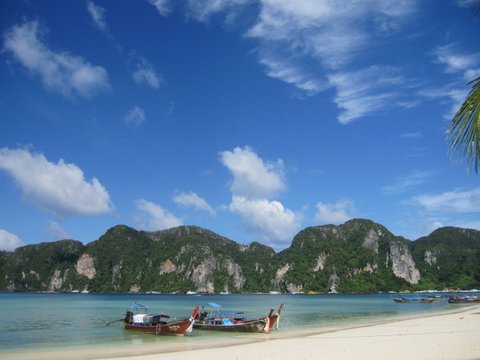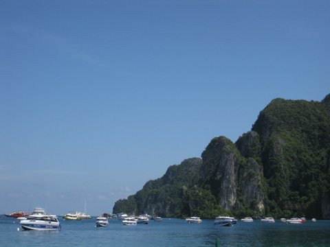 피피 선착장 근처, 스노클링 투어 대기하고 있는 보트들.