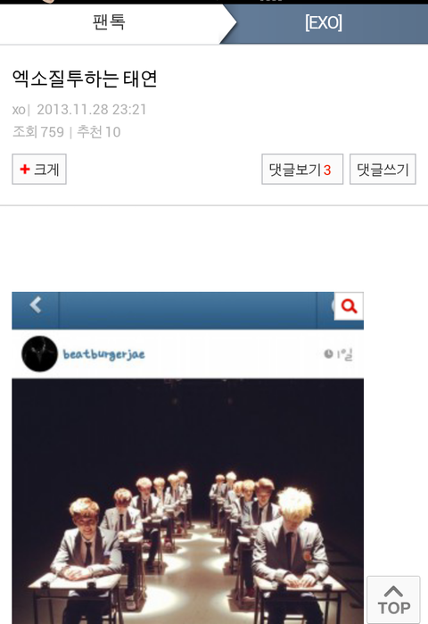 톡커에 올라온 엑소질투하는태연