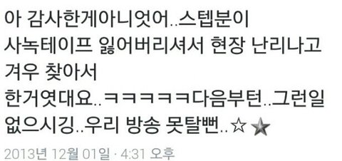 ㅋㅋㅋㅋㅋㅋㅋㅋ웃지못할 해프닝이네요ㅋㅋㅋㅋㅋ스텝들 얼마나 쫄렸을까ㅋㅋㅋㅋ