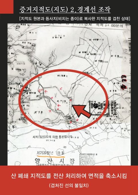 피해자산 10500평을 점유자 땅으로 둔갑시킨 공직자와 경찰, 검사를 국민 앞에 고발합니다.지난 2000년 양산시 도로 과가 피해자산 동면 00리 산 1*7 번지에 있는 농로를 포장한다고 동의를 요청하여 주민편의를 위해 보상 없이 약 400평을 동의 하였습니다.그 이후 양산시 지적과 도로과 대한지적 공사 측량기사 7명(측량감정 7회)이 담합하여 지적도를 조작하였습니다.2009년 양산 경찰서 수사관, 울산 지검 검사는 지적도 조작자와 측량기사 및 점유자들을 조서조작하여 불기소(혐의 없음)시켰습니다.제가 2013년 5월 수차에 걸쳐 조작한 지적도 15장, 오차 발생시킨 측량 감정도 6장및 현장 사진 300장 이상을 검찰에 제출하였더니 재수사 할 필요가 없다고 답하였습니다.산 1*7-2 분할 후 660평이 지적도 조작하여 2029평을 점유시켰는데이래도 지적도 조작이 아닙니까?양산시는 대정 7년 일본사람이 최초 측량하여 사정 등록한 산 지적도를 공개하라! 공개하라! 공개하라!수사관이 현장을 조작하여 제 땅을 점유자 땅으로 만들었으며(피해자가 증거 제시 후, 수사관은 정보를 점유자에게 제공하여 현장을 계속 훼손하였다.(피해자 증거를 무용지몰로 만들었다.))또한 피해자 나이가 70세라 하여 측량과 지적도 조작을 모른다고 착각하고 지적도 조작을 2000년부터 2012년 10월까지 15회 반복하였습니다.저는 13년간 수사기관의 잘못으로 고통을 받고 있습니다.울산지검이 아닌 타 지검의 감찰 검사가 재수사 하기를 요청합니다이미지확대보기