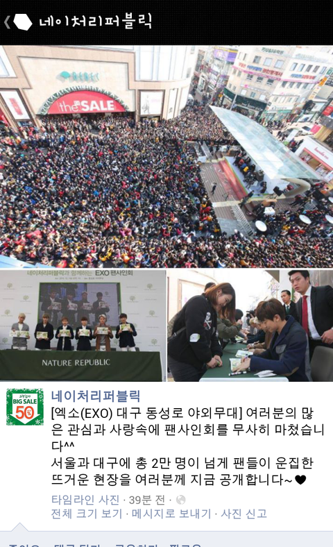 네이쳐 페북에 올라온 오늘 대구팬싸 현장